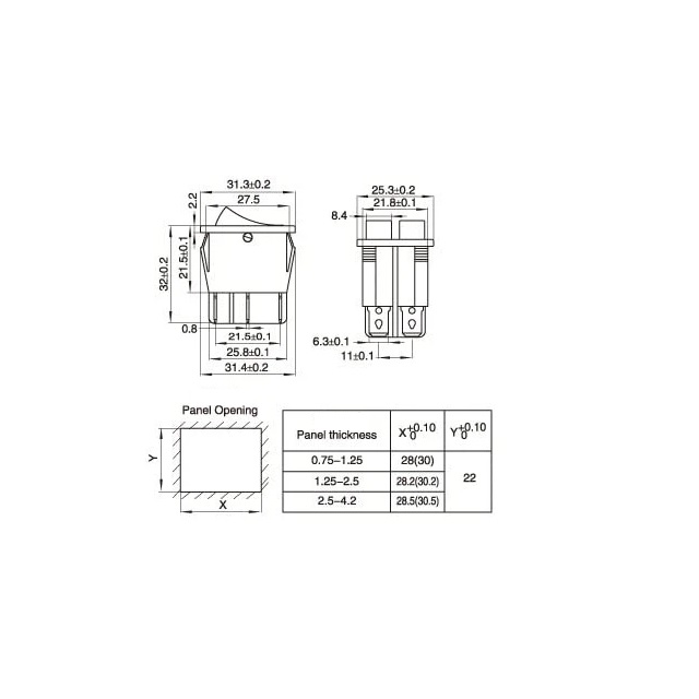 Intrerupator 6 poli 250V 15A buton rosu+verde – 22 x 28.4mm Ambalare: vrac 1 buc.