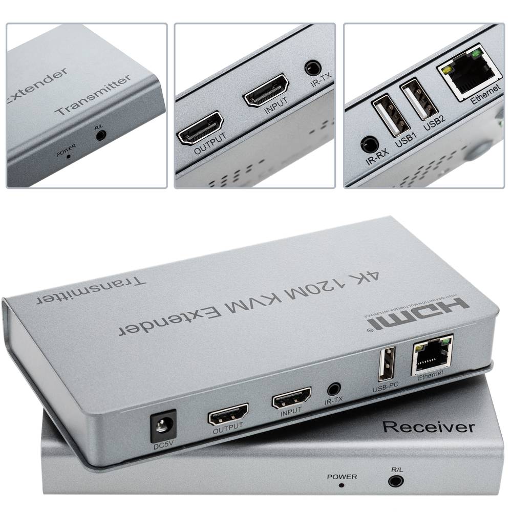Prelungitor (extender) HDMI + Cat 5/6, distanta max. 120m + KVM
