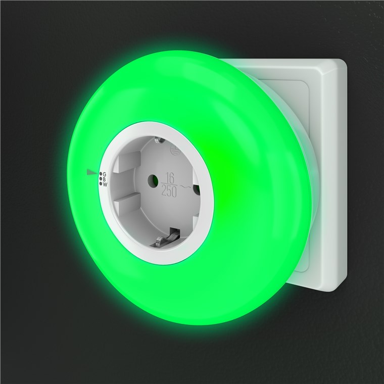 Lumina de noapte LED cu plug-in cu functie de schimbare a culorii (verde, albastru, echilibrat in lumina zilei), senzor automat de crepuscul si priza de siguranta (tip E/F)
