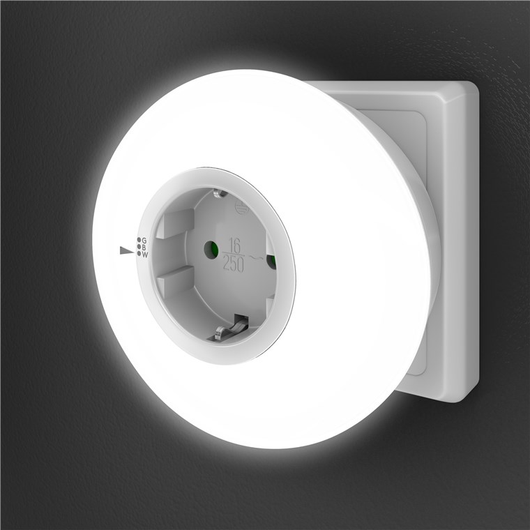 Controlul automat al crepusculului la indemana va permite sa lasati lumina de noapte in priza in timpul zilei. Lampa se activeaza automat cand luminozitatea atinge un nivel sub 21 lx.